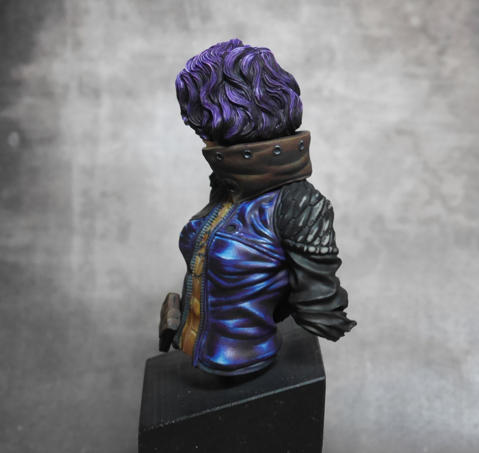 I’m mostly looking forward to getting onto the stuff on her back – it looks like a sort of quilted fabric that I’m keen to do in metallics, as if it’s a kind of shimmer field generator or something. That’ll also let me get some more greens and purples in there, hopefully without making it all a bit too monochrome.