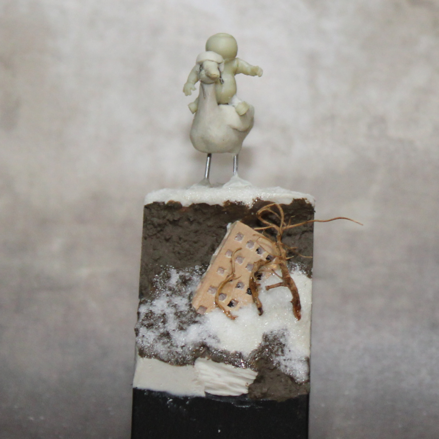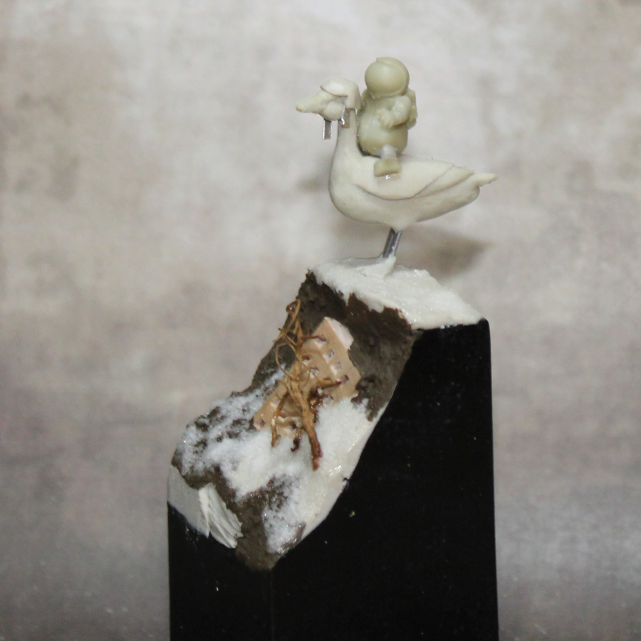 Just as I enjoyed playing with scale with the first couple of these, I’ve now gone to the other extreme and depicted a giant astronaut riding a brobdingnagian duck over the ruins of a puny human city in the far future. May none of us live long enough to witness such horrors.