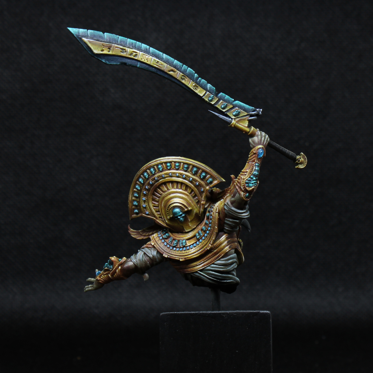 In the many weeks since my last post, I completed the tomb king bust, which I have just remembered to upload to Putty & Paint here. I’m generally pretty happy with how he came out – the lighting is a bit all over the place, but I rationalise that with the rule of cool – I needed the light to hit places it probably shouldn’t have to make sure the gold was suitably shiny.
