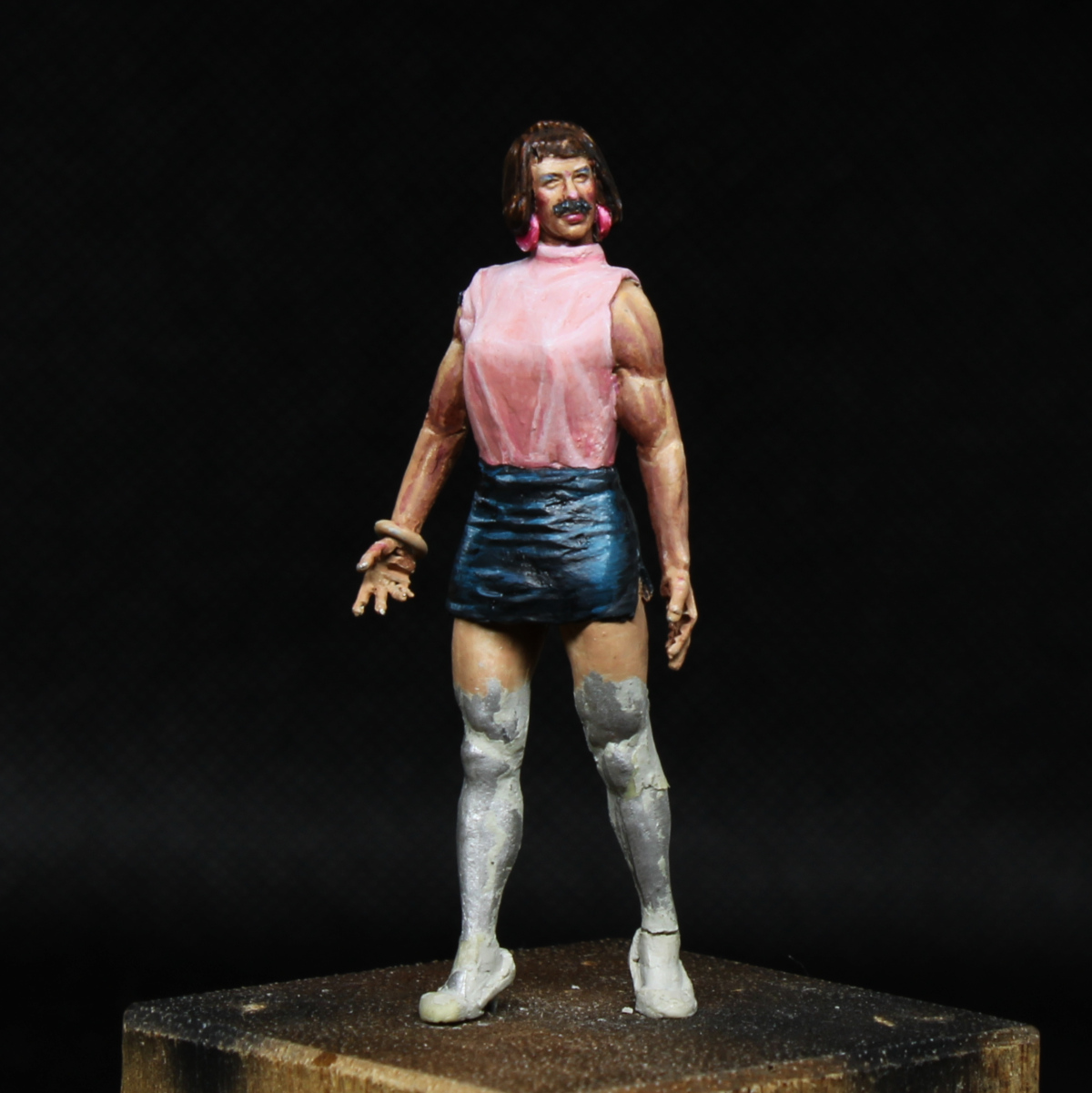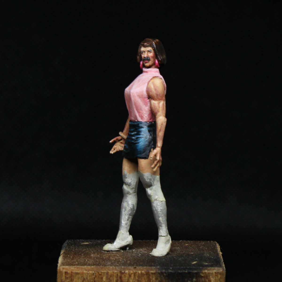 He will get a generous dose of AK Ultra Matte before he’s finished, so hopefully the errant, less controllable shine on his hair and vinyl miniskirt will be a little less distracting. But now I’m quite looking forward to painting his vintage Hoover.