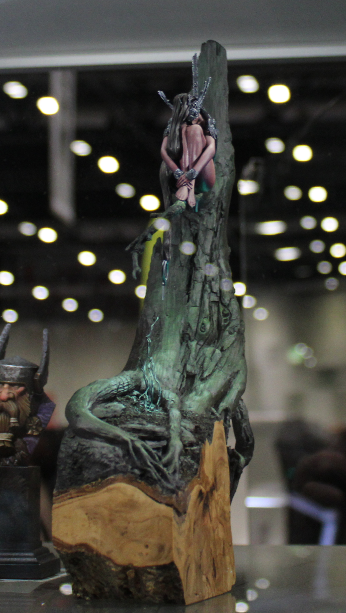 Furthermore, I can only assume some of the judging must have been influenced by this atrocious lighting. One piece in particular was, for me, the stand-out entry of the show. I thought it was a strong contender for best of show. It remained in the cabinet, not even a finalist. (For reference, it’s the woman in the tree that I managed to get a picture of with the help of a couple of friends using their phones as torches.)