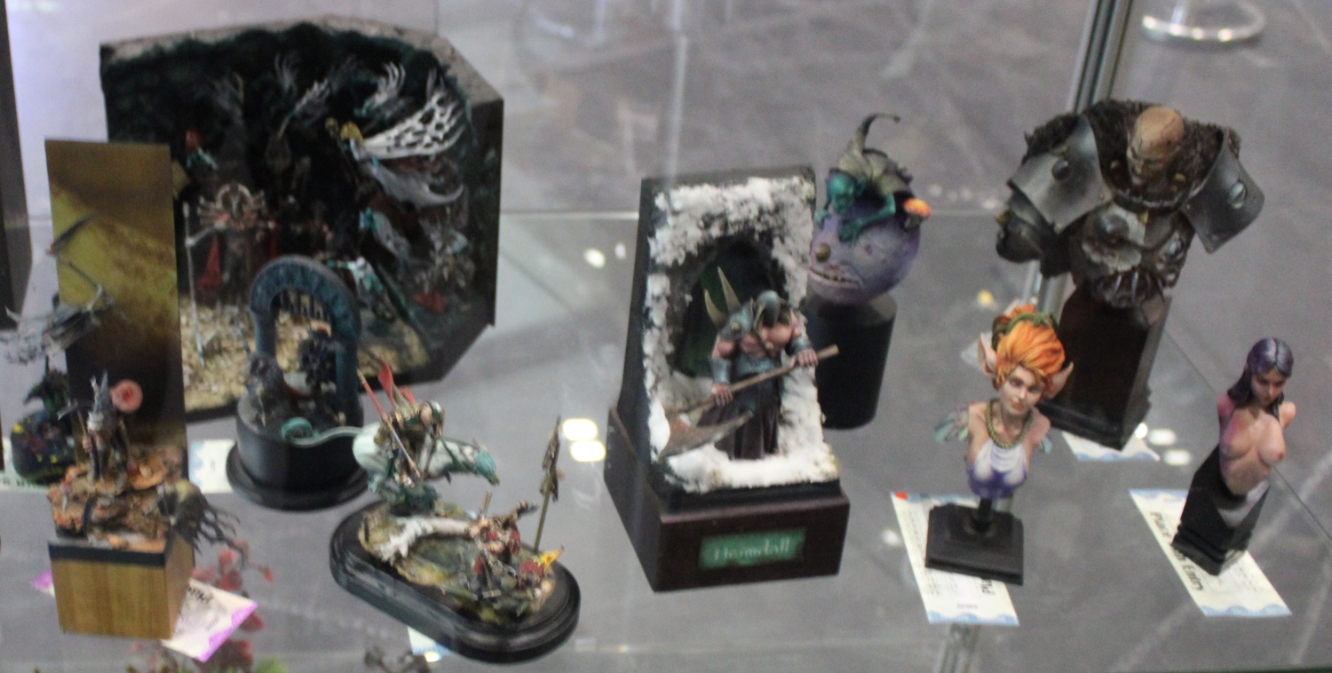 It’s been much too long since I last updated the blog about my own work, but that can wait for now as I’ve just returned from Salute so this entry is earmarked for show coverage. The usual caveat of “I’m a terrible photographer” (I’ve discarded more than half of the photos I took because they were even worse) is this time further enhanced by the especially terrible lighting in the cabinets, but I’ll talk about that in more detail after the pictures. First picture is Andy Wardle’s best of show. Click the pictures to embiggen.