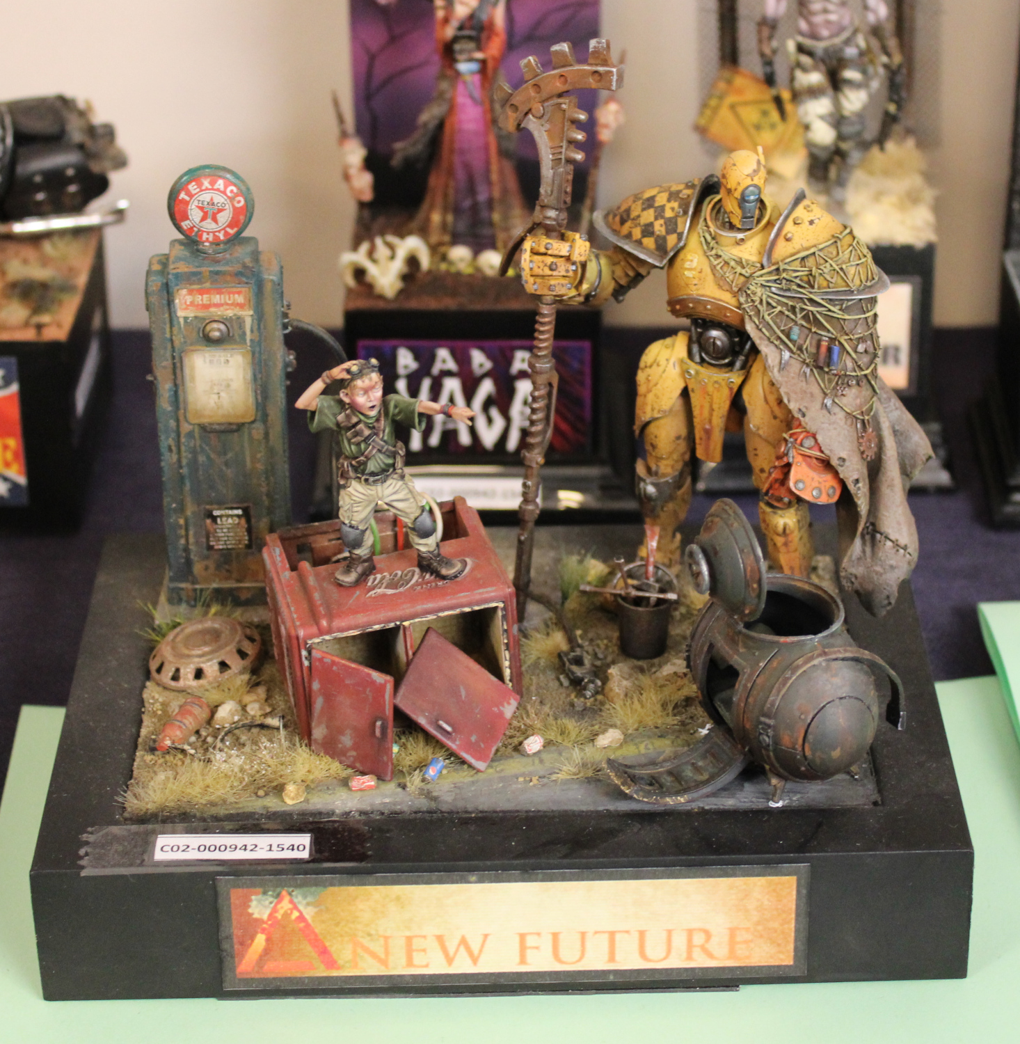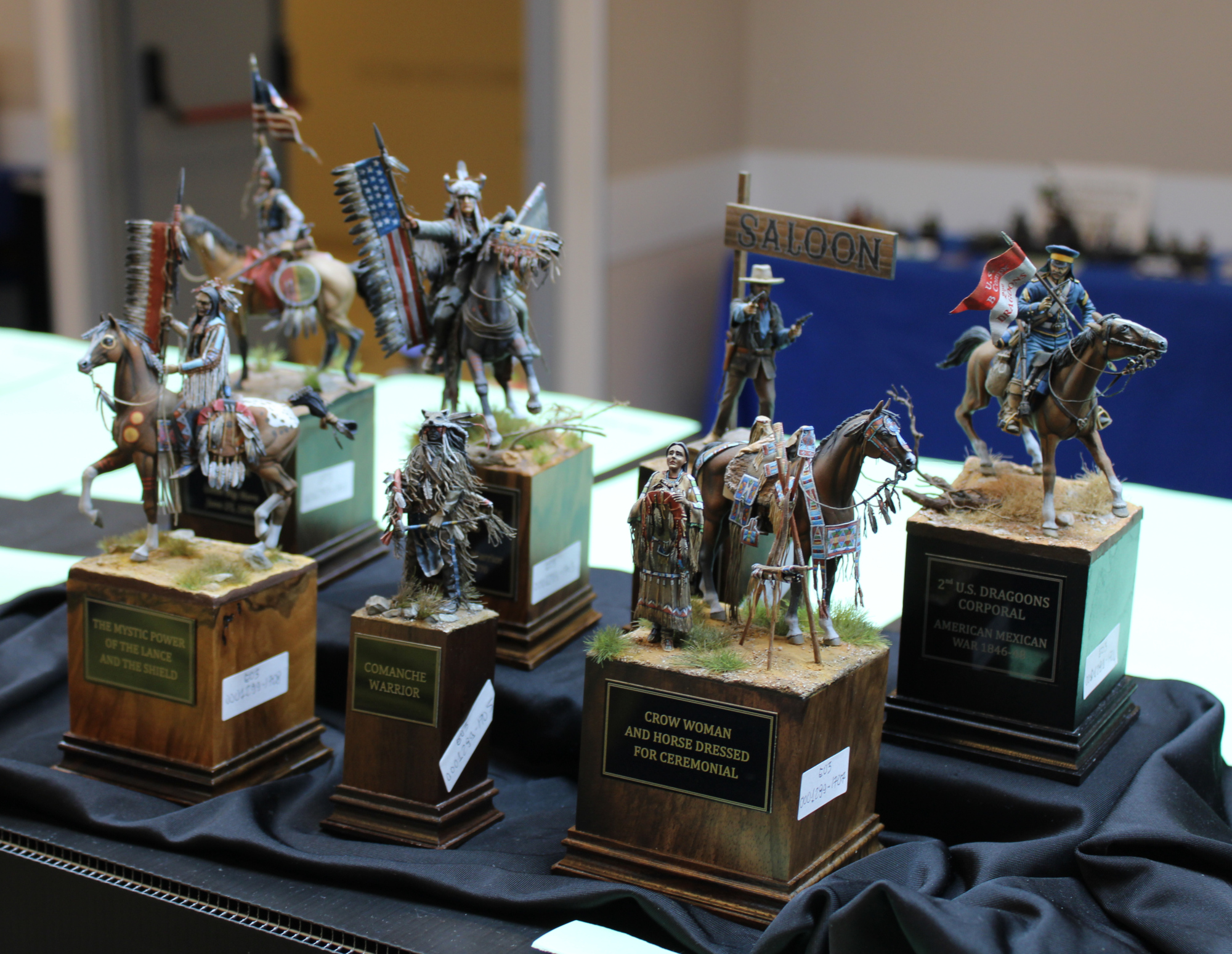 Lighting at the show was a bit 50:50. The lights they had were good – suspended panel lights over the displays in the fantasy and historical figures room, some lamps over the flats, etc. However, in some places the large windows let in far too much light, and some models I think really suffered from that.