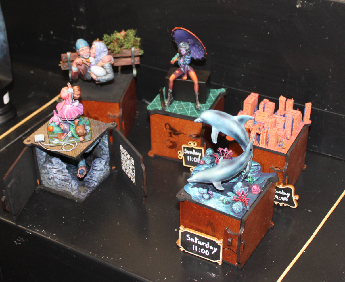 This leads into one thing I saw at Monte that I wasn’t particularly a fan of: QR codes to explain the stories. I feel like this was a missed opportunity. A QR code leading to a webpage that tells you what the story is just tells me that the artist isn’t confident in their storytelling. They don’t trust the viewer to understand what they’ve done. I’m actually – and this surprises me – in favour of using QR codes to create a multimedia artwork. Link to an animation that precedes the story you’ve modelled. Or link to a journal written by someone in the scene. A story exists in a whole world. Make your stories BIGGER. Trust in the narrative you’ve already made and run with it instead of spelling it out.